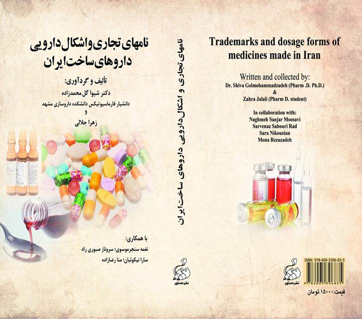 چاپ کتاب نامهای تجاری و اشکال دارویی داروهای ساخت ایران اخیرا کتاب " نامهای تجاری و اشکال دارویی داروهای ساخت ایران " به تالیف و گرد آوری خانم دکتر شیوا گل محمدزاده دانشیار گروه فارماسیوتیکس دانشکده داروسازی مشهد و خانم زهرا جلالی به چاپ رسیده به ایشان تبریک گفته و آرزوی توفیقات روزافزون را داریم |