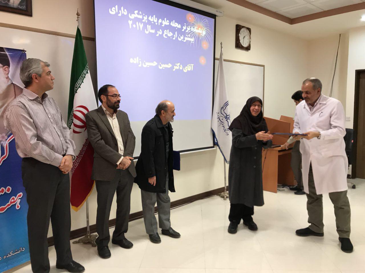 نویسنده برتر مجله علوم پایه پزشکی دارای بیشترین ارجاع در سال 2017 : جناب آقای دکتر حسین حسین زاده