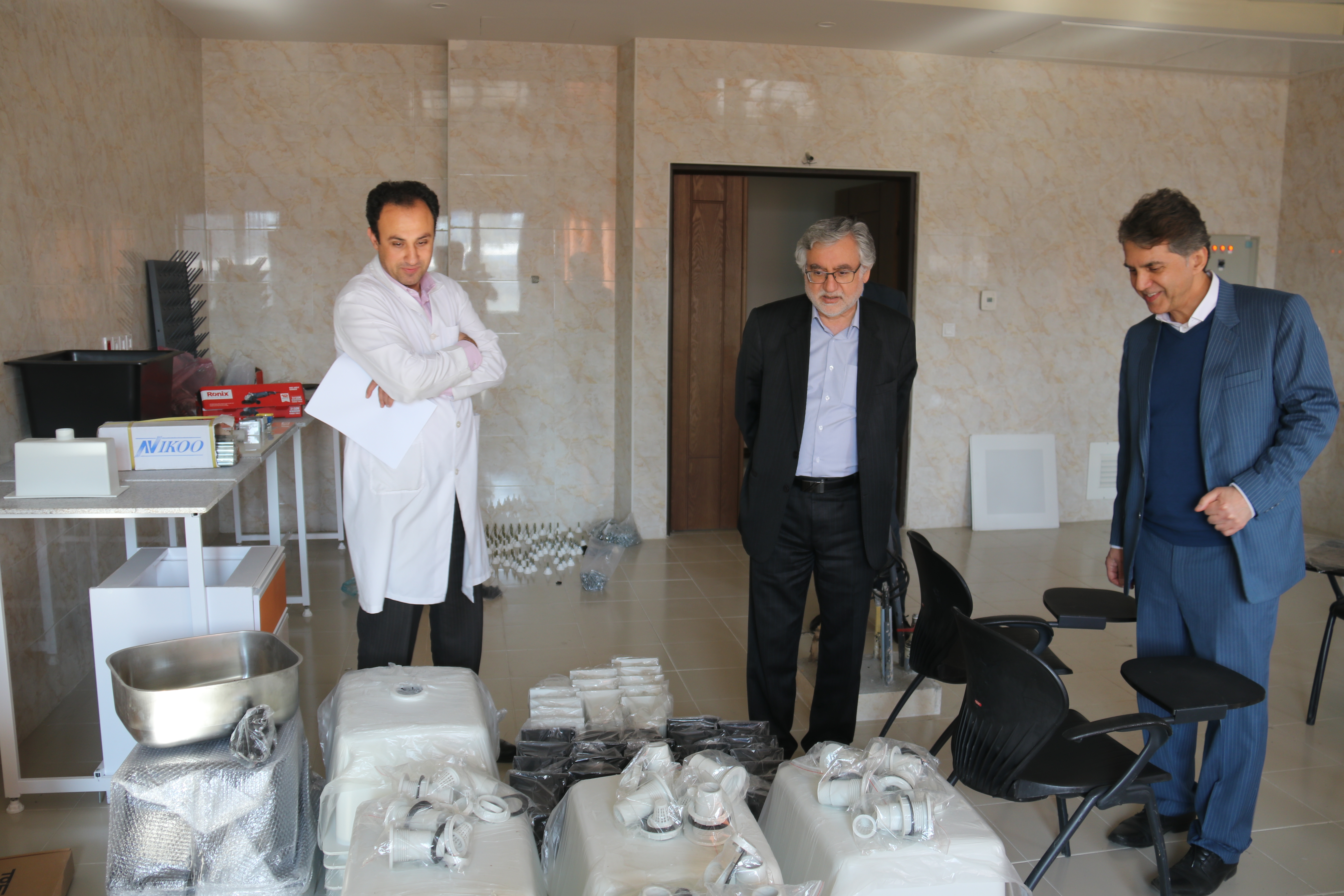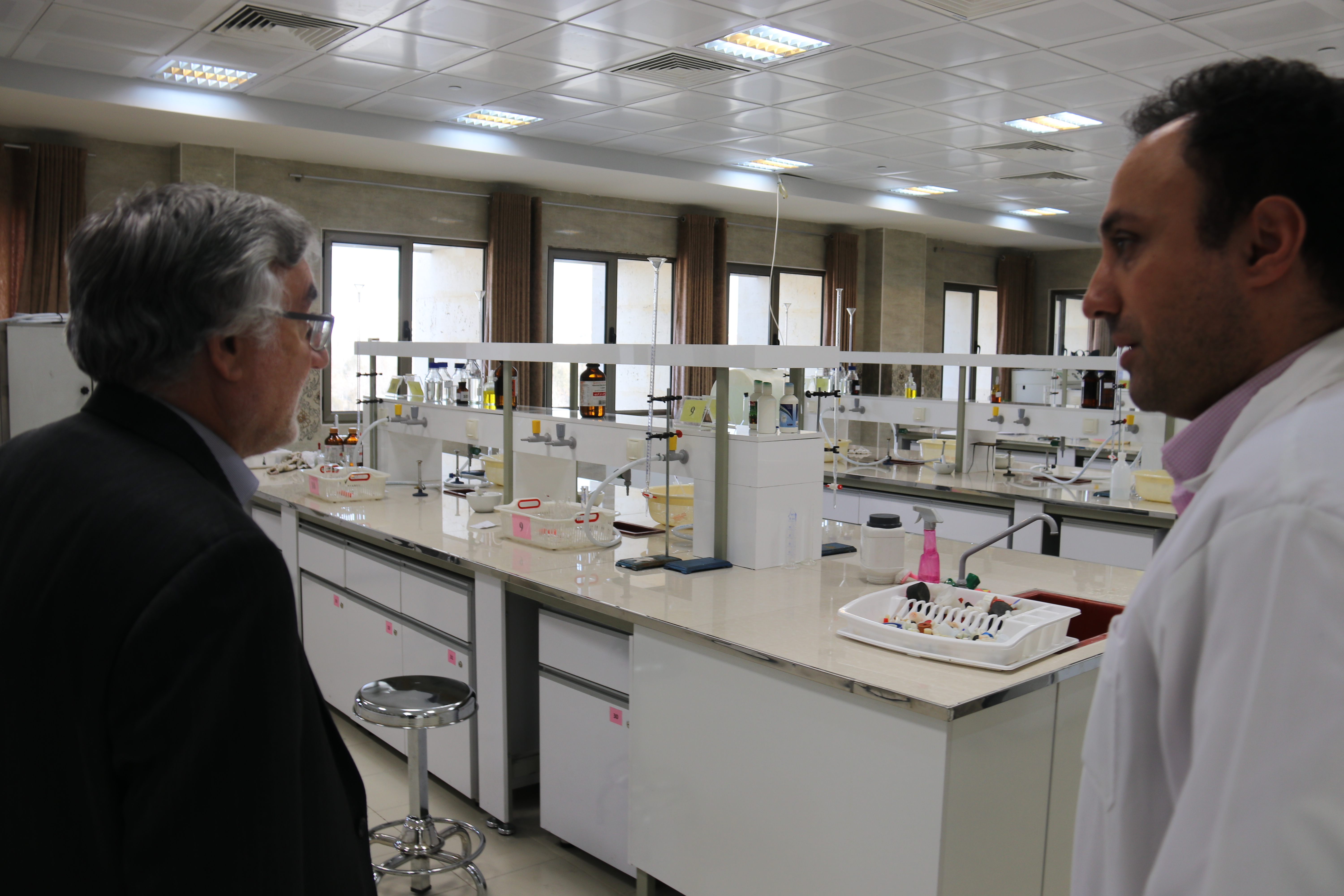 بازديد رييس محترم دانشگاه علوم پزشکي مشهد –آقاي دکتر دارابي –از دانشکده داروسازی . بررسی روند پيشرفت آماده سازی وتجهيز آزمایشگاه ها دانشکده داروسازی در تاریخ دوشنبه 28 آبان ماه میزبان آقایان دکتر دارابی رییس محترم دانشگاه ، دکتر شمسیان مشاور عالی ریاست دانشگاه در امر آموزش و پژوهش و همچنین دکتر خوبان مدير محترم روابط عمومي دانشگاه بود.دکتر دارابی و هیات همراه پس از بازديد از روند پیشرفت آماده سازی آزمايشگاهها، در نشستی صمیمانه با اعضاي محترم هيئت علمي دانشکده شرکت نمودند. در ابتداي جلسه آقاي دکتر بديعي رييس دانشکده، با خيرمقدم و تشکر از رييس دانشگاه، ضمن ارایه گزارشي از فعاليتهاي دانشکده بمنظور کارایی بهتر آموزشی و پژوهشی،بر ضرورت پايان يافتن تجهيز آزمايشگاهها تاکید نمودند. رييس دانشگاه با اشاره به نقش موثر و پررنگ دانشکده داروسازي در ارتقای جايگاه دانشگاه در مجامع علمي و بين المللي و کسب شرايط ممتاز در رتبه بندي هاي وبومتریک، تایمز و شانگهای خاطر نشان کرد: اگر تلاش و همت اعضای هیات علمی در آزمایشگاه ها و مراکز تحقیقاتی نبود به طور حتم نمی توانستیم به این جایگاه دست یابیم. دکتر دارابي با یادآوری اینکه در حال حاضر 7 نفر از اعضای هیات علمی دانشگاه در لیست دانشمندان برتر یک درصد جهان قرار دارند افزودند: 5 نفر از این دانشمندان در دانشکده داروسازی فعال هستند که این نشان دهنده موفقیت این دانشکده در حوزه علم و پژوهش است. در ادامه نشست، برخي از اعضاي هيئت علمي دانشکده نیز به بيان سخن و دغدغه هاي آموزشی،پژوهشی و... پرداختند. روابط عمومي دانشکده |