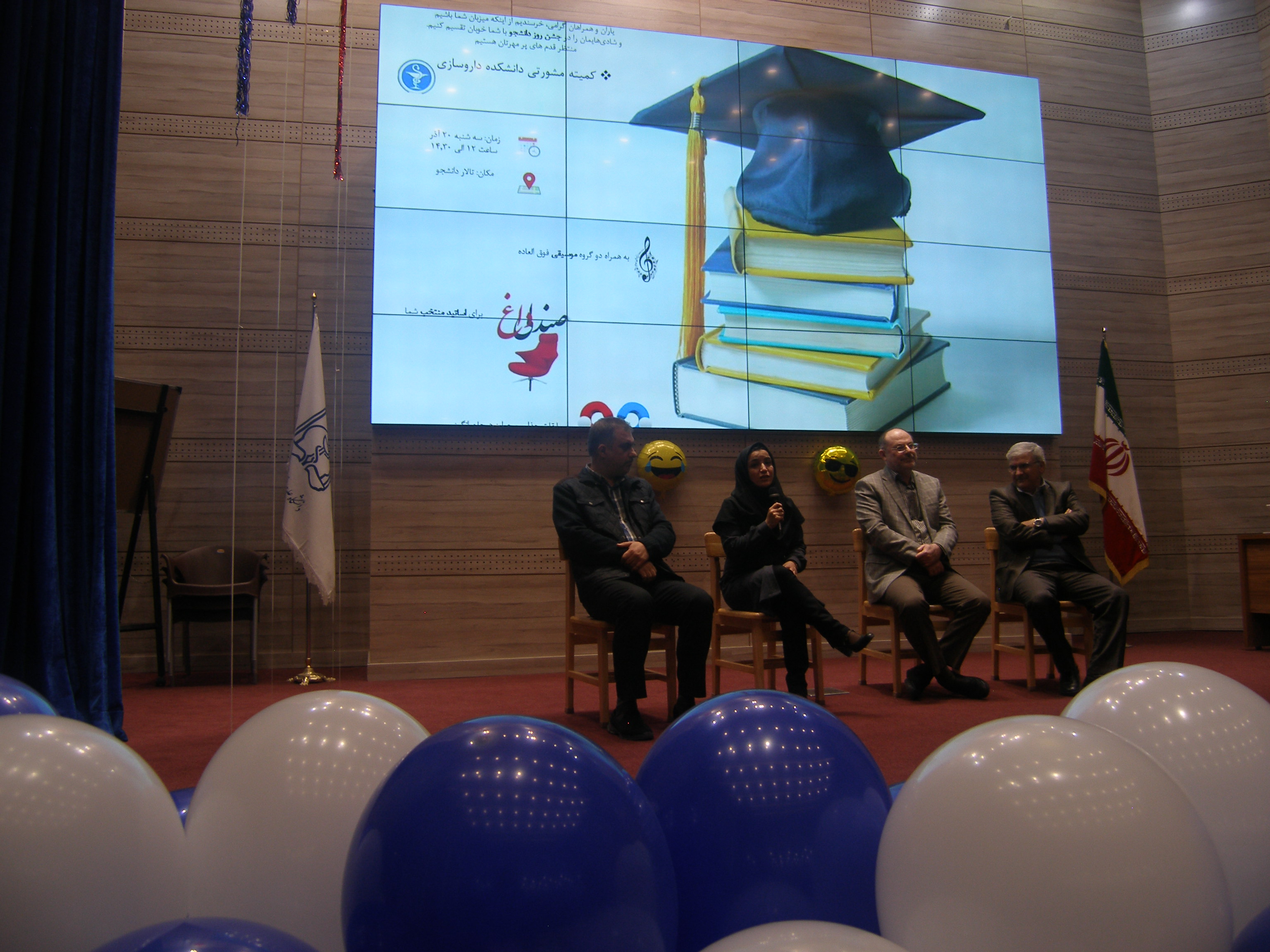 مراسم جشن روز دانشجو در محل تالار دانشجو مراسم در روز سه شنبه مورخ 20/9/98 ساعت 12 با حضور پرشور دانشجويان، اساتيد و کارکنان دانشکده داروسازي برگزارشد. برنامه با خيرمقدم و خوش آمد گويي خانم دکتر جوادي، معاون محترم دانشجويي فرهنگي دانشکده شروع شد. صندلي داغ،لباهنگ و موسيقي از برنامه هاي اين مراسم بود. در پايان از شرکت کنندگان با شربت و شيريني پذيرايي گرديد. روابط عمومي دانشکده