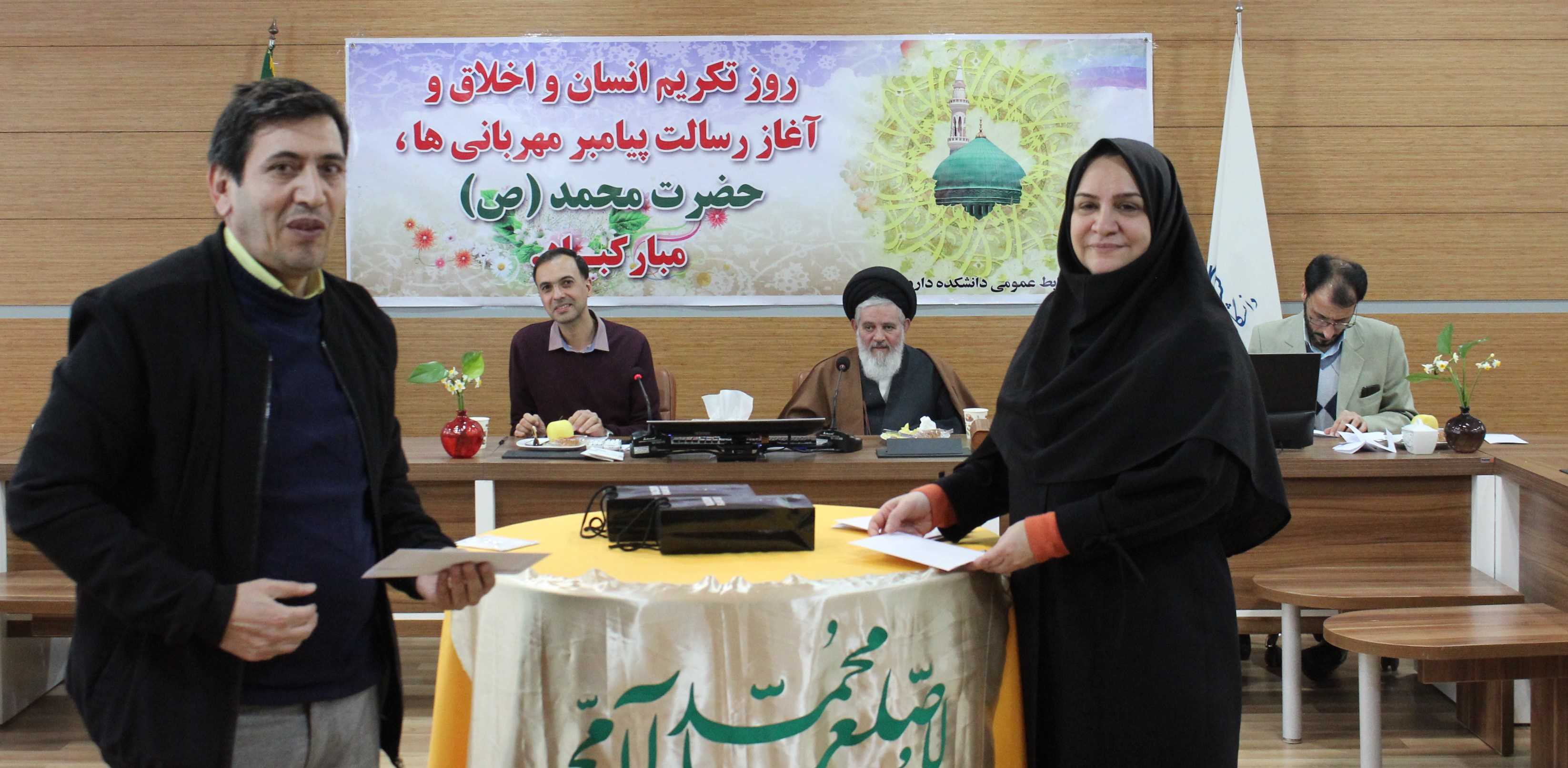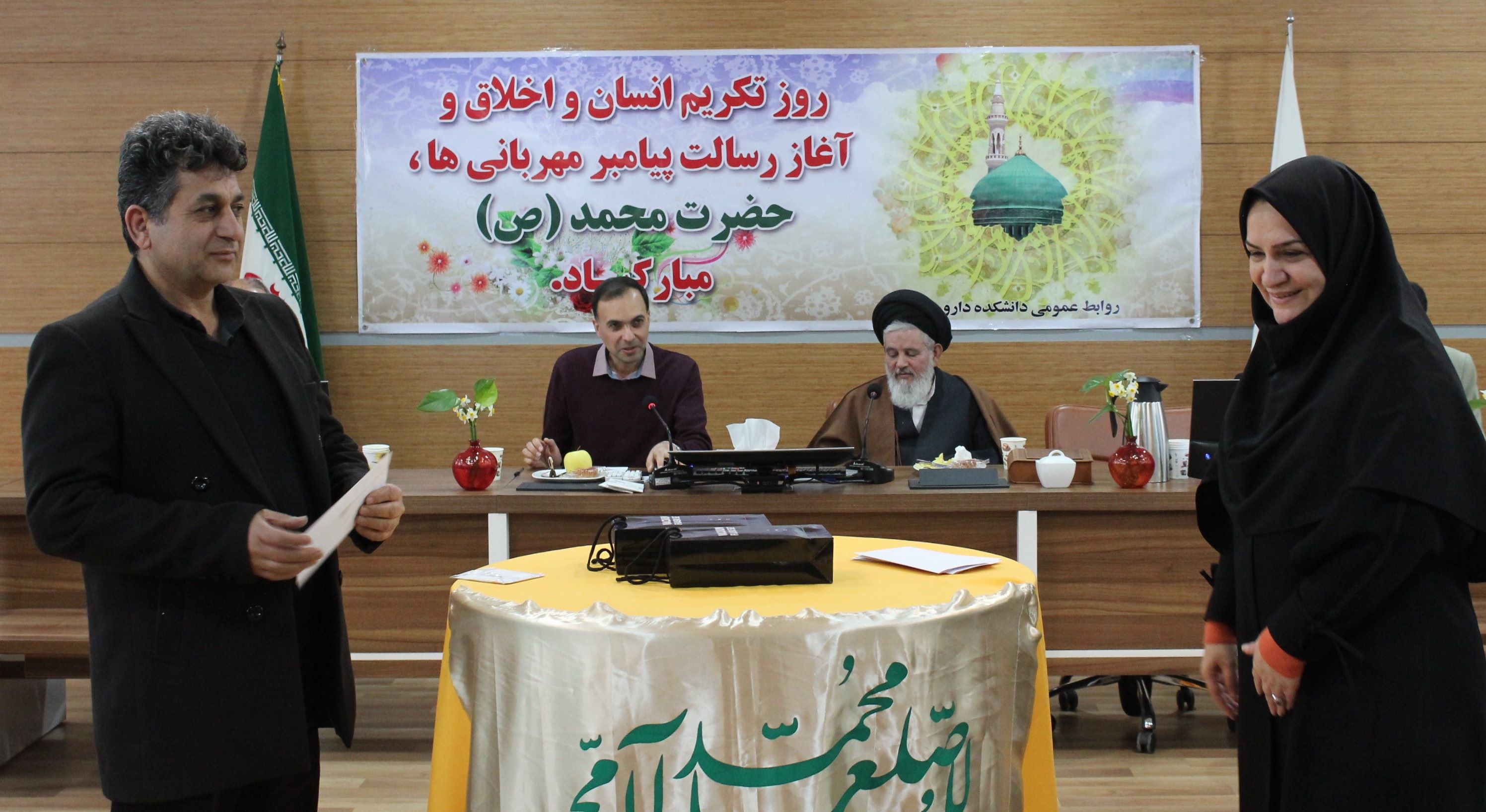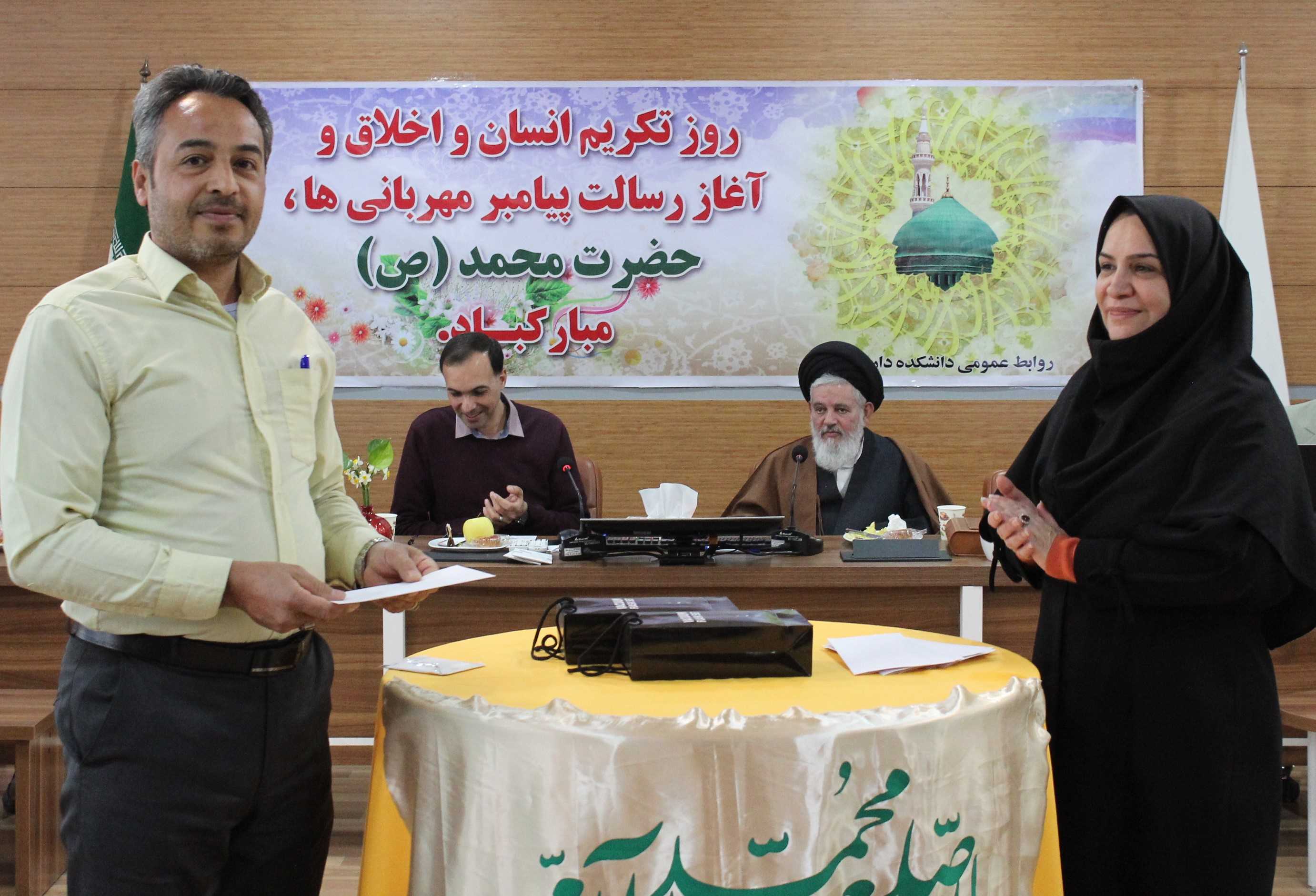 در پایان مراسم و با توجه به میمنت عید بزرگ مبعث، از برگزیدگان مسابقات ورزشی، قرآنی و کتابخوانی و همچنین مسابقه عکس و مکث با پدر به مناسبت گرامیداشت روز ولادت امام علی(ع) و روز پــــدر با اهدای هدایا تقدیر به عمل آمد.