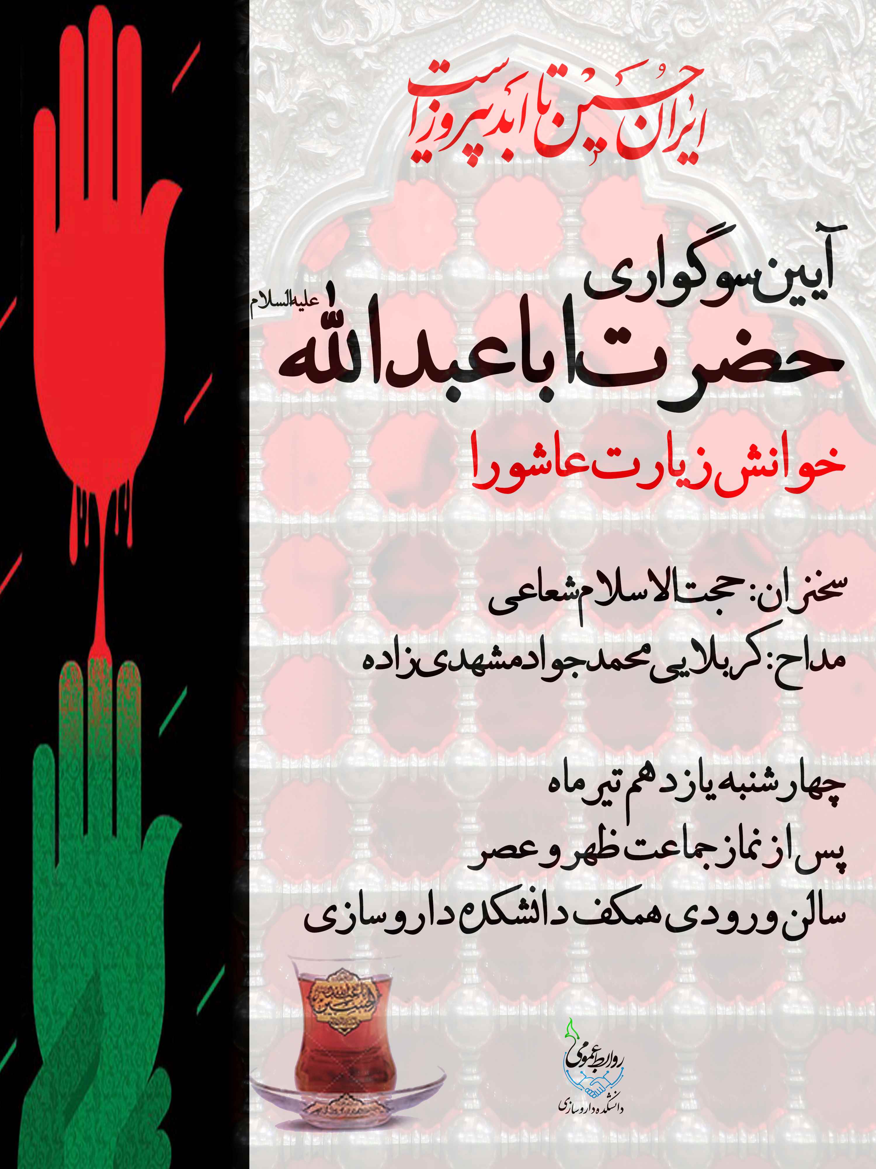 بنا به سنت چندین ساله، سفره ضیافت امام حسین علیه السلام در دهه اول محرم در دانشکده داروسازی برپاشد. آیین قرائت زیارت عاشورا که از روز شنبه دوم ماه محرم آغاز شده بود، روز چهارشنبه یازدهم تیرماه با برپایی ضیافت اطعام عزاداران حسینی،میزبان مشتاقان و سوگواران اهل بیت علیهم السلام بود. پس از اقامه نماز جماعت ظهر و عصر در سالن ورودی، حجت الاسلام شعاعی پیشنماز دانشکده در سخنانی به فلسفه قیام عاشورای امام حسین علیه السلام پرداخت و وظیفه مسلمان و مومن راستین را پیروی از مسیر آل الله دانست و تاکید کرد: حماسه شهادت امام و یارانش به ما آموخت که زیستن در زیر سایه استبداد و تسلیم، بمعنی ذلت و حقارت است و مومن هرگز زیر بار زور و ذلت نخواهد رفت. حجت الاسلام شعاعی با یادآوری اینکه شیعه واقعی همواره در مسیر هدایت و قرآن گام برداشته و در این مسیر از بذل جان و مالش دریغ نمی کند گفت: اینکه می گوییم کل یوم عاشورا و کل ارض کربلا یعنی فریاد عدالتخواهی، زیربار زور نرفتن و در سایه استبداد و ذلت نزیستن، یعنی فرهنگی انسانی وجهانی که در همه زمان ها کاربرد داشته و و با نظام سلطه و طاغوت همیشه سر تقابل خواهد داشت. این جبهه حق علیه باطل همیشه گشوده خواهد بود تا انشاالله پرچم پیروزی به دست قائم آل محمد (عج)برافراشته شود. در بخش دیگر مراسم، مداح اهل بیت کربلایی جواد مشهدی زاده، فضای محفل را با نام و یاد شهیدان کربلا زینت بخشید تا سوگواران ومشتاقان با سینه زنی و نثار اشک خود، ارادت خویش را به اهل بیت علیهم السلام نشان دهند. در پایان مجلس نیز، اطعام بصورت بیرون بر تقدیم حاضران شد تا به تبرک و تیمن، از ضیافت سفره امام حسن علیه السلام توشه ای برداشته باشند. یادآوری می شود که بانیان این سفره اساتید و هیات علمی دانشکده بودند که نذورات نقدی خود را برای ترویج فرهنگ عاشورایی و حفظ شعائر اسلامی تقدیم کرده بودند. انشاالله که نذر همه این عزیزان مقبول درگاه خداوندی باشد. روابط عمومی دانشکده