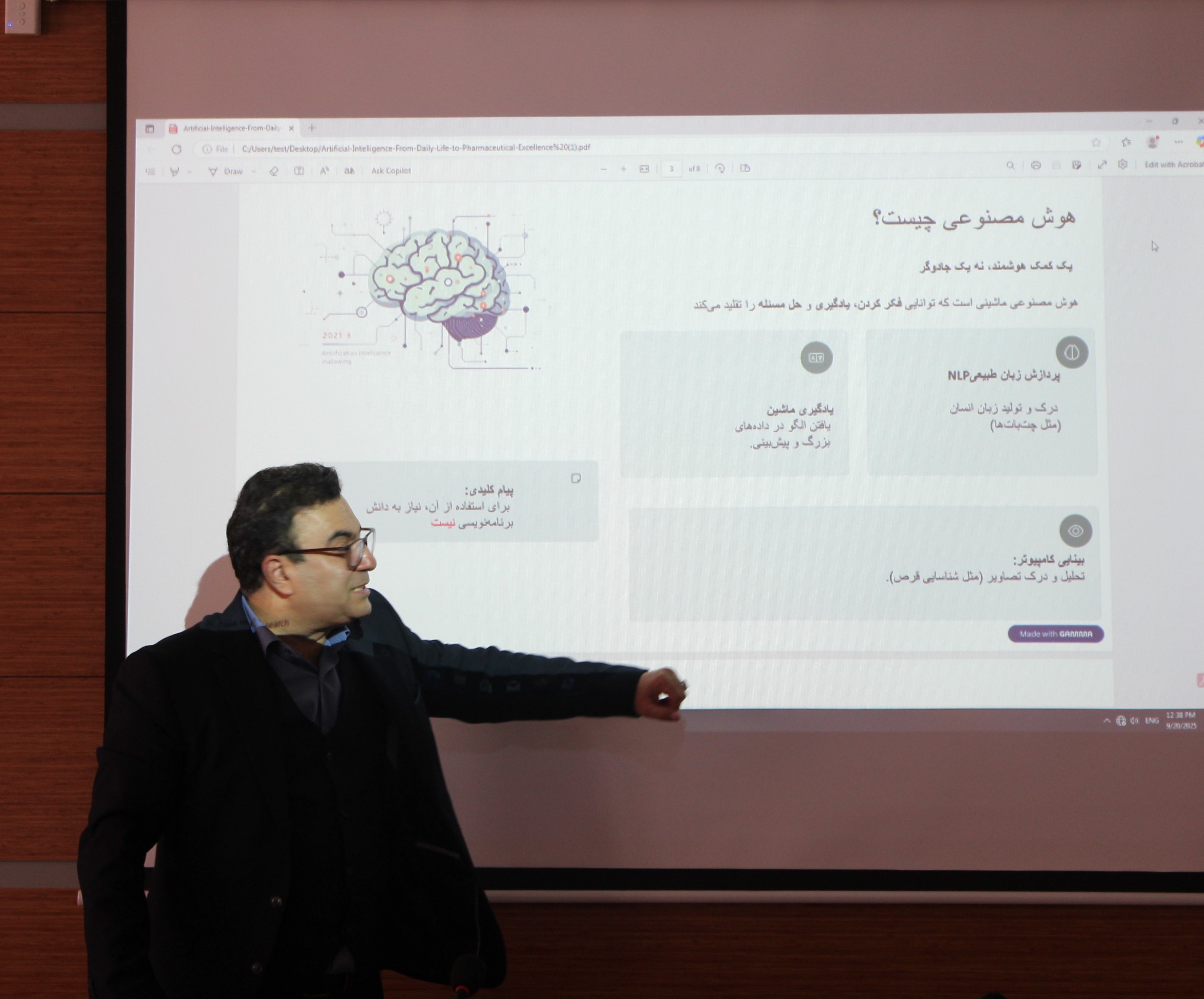 با همت واحد امور بانوان دانشکده و بمنظور ارتقای دانش و آگاهی علاقه مندان حوزه هوش مصنوعی، کارگاهی با حضور دکتر فریدون صادق زاده یزدی مدرس و پژوهشگر حوزه هوش مصنوعی روز شنبه 29 شهریوردر تالار پورسینا دانشکده داروسازی برگزار شد. در این دوره کوتاه آموزشی که با حضور جمعی از اساتید و کارکنان دانشکده همراه بود دکتر صادق زاده در خصوص ابعاد و جنبه های کاربردی هوش مصنوعی، باید ها و نباید های تعاملی با این فناوری و راهکارهای بهره وری بهتر و مفیدتر در راستای شغلی و علاقه مندی های شخصی و اجتماعی به گفتگو و ارایه نظر پرداخت. همچنین این دوره آموزشی با همت معاونت تحصیلات تکمیلی دانشکده، همچنین چندی پیش ، این دوره آموزشی با همت معاونت تحصیلات تکمیلی دانشکده و با همکاری انجمن علمی داروسازی سنتی و فارماکوگنوزی برای دانشجویان دوره دکترای عمومی و تخصصی دانشکده برگزار شد که با استقبال علاقه مندان همراه بود. یادآوری می شود دانشجویان محترم می توانند برای اطلاع از برنامه های بعدی به کانال انجمن درشبکه های اجتماعی(ایتا و...) با آیدی TPPSMUMS @ مراجعه کنند.