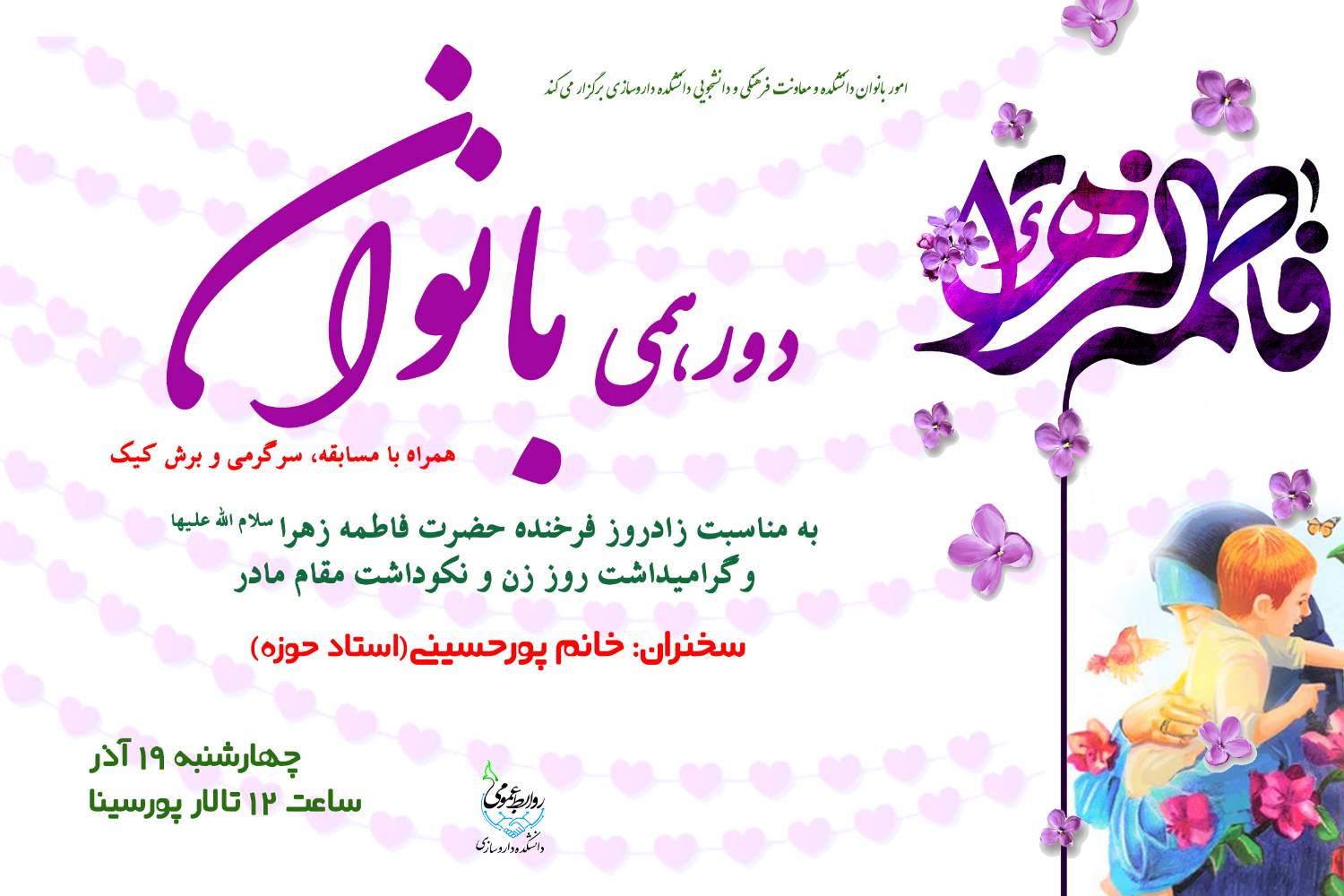 به مناسبت فرخنده زادروز حضرت فاطمه زهرا سلام الله علیها گرامیداشت روز زن و نکوداشت مقام مـــــادر، مراسمی با حضور جمعی از بانوان شاغل کارمند،هیات علمی و دانشجو در سالن پورسینا دانشکده داروسازی برگزار شد. خانم دکتر رضوی ریاست دانشکده در سخنان ابتدایی ضمن خوشامدگویی به بانوان این روز فرخنده را به آنها تبریک گفت و از آنان خواست با بهره مندی از معارف الهی و کسب دانش، برای نهادینه سازی رفتار حضرت زهرا بعنوان الگوی متعالی زیستی تلاش داشته باشند. در این دورهمی صمیمانه بانوان؛ سرکار خانم پورحسینی استاد حوزه و موسسه جامعه المصطفی در سخنانی در لزوم الگوپذیری انسان برای رفتار اجتماعی و شخصی اظهار داشت: نیاز به الگو، از نیازهای طبیعی بشر است و انسان را وا میدارد تا با در نظر داشتن الگوی مورد نظر، تلاشی هدفدار و آگاهانه برای رسیدن به ویژگیهای رفتاری و اخلاقی الگو در پیش گیرد.بنابراین شخصیت الگو، بهعنوان یک نقطه کانونی در محور رشد و هدایتهای اخلاقی تربیتی قرار میگیرد و در شکلگیری رفتار تربیت شونده، آثار زیادی به جای میگذارد. این استاد حوزه با توجه به شخصیت تراز حضرت زهرا سلام الله علیها همچنین اشاره کرد: قرآن کریم، رسول گرامی اسلام(ص) را الگوی شایسته و اسوه حسنه مؤمنان معرفی کرده است، در این الگوگیری فرقی میان زن و مرد نیست، اما بهدلیل خُلق و خوی و مسئولیتهای خاص زنانه، لازم است زنان از جنس خود هم، الگویی داشته باشند تا از نظر پذیرش الگو و روشن شدن مصادیق اسوه پذیری، به راه و رسم و سیره اخلاقی و خانوادگی او اقتدا کنند. پیامبر(ص) خود در سخنانش، فاطمه(س) را از وجود خود میداند و بارها در جمع مؤمنین میفرماید: فاطمه پاره تن من است. وجود فاطمه(س) از وجود رسول خدا(ص) جدا نیست و سیره او جلوه دیگری از سیره پیامبر است، پس فاطمه(س)، ادامه راه و سیره رسول خدا(ص) در همه زمینههاست ازجمله بندگی خدا، تقوا و عبادت، حجاب و عفاف و... در ادامه برنامه از دانشجویان مادر در دوره های عمومی و تخصصی با اهدای هدیه تقدیر به عمل آمد. از دیگر برنامه های جانبی این مراسم برگزاری مسابقات سرگرمی و هنری بود که به برگزیدگان جوایزی اهدا گردید. برش کیک و پذیرایی از حاضران آخرین برنامه این مراسم بود. |